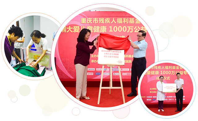 2018年6月3日,重庆小米熊儿童医院联合重庆市残疾人福利基金会发起成立了重庆首个1000万级儿童公益救助基金——小熊大爱儿童健康成长公益专项基金,计划历时10年(每年出资100万元)致力于儿童自闭症、脑瘫、智力低下及癫痫等病症患儿的治疗和康复。