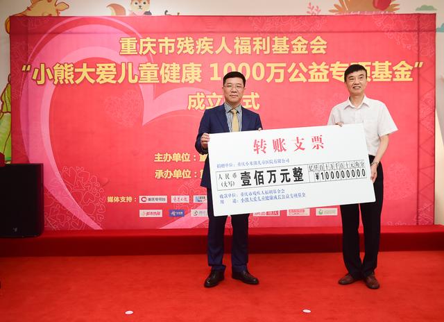 6月3日上午,重庆小米熊儿童医院联合重庆市残疾人福利基金会,由重庆小米熊儿童医院出资1000万元成立了“小熊大爱儿童健康成长公益专项基金”。据了解,该基金计划历时10年(每年出资100万元)致力于儿童自闭症、脑瘫、智力低下及癫痫等病症患儿的治疗和康复。